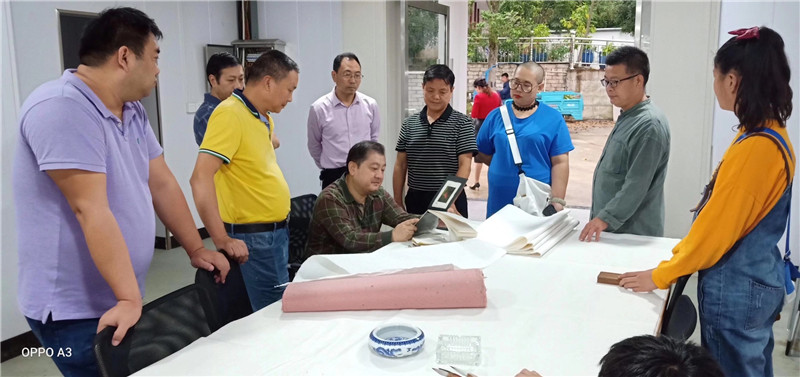 感謝休寧縣書法協(xié)會主席胡社文陪同安徽省青年書法家協(xié)會主席王亞洲等藝術(shù)家到公司指導(dǎo),體驗(yàn)徽州楮皮紙傳統(tǒng)技藝。